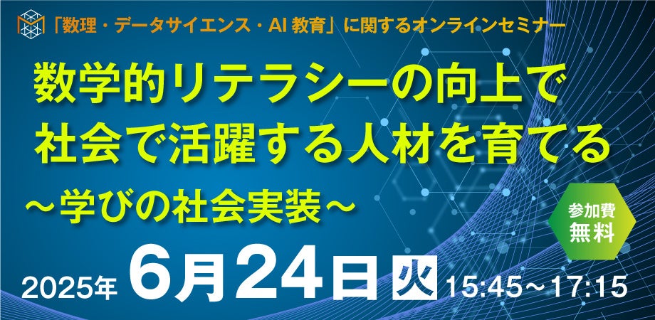 AIを活用したアダプティブな対話式 ICT 学習教材の開発と提供を行う株式会社すららネット(本社:東京都千代田区、代表取締役:湯野川孝彦)は、公益財団法人日本数学検定協会の協力のもと、無料オンラインセミナー「数学的リテラシーの向上で社会で活躍する人材を育てる ~学びの社会実装~」を2025年6月24日(火)に開催いたします。