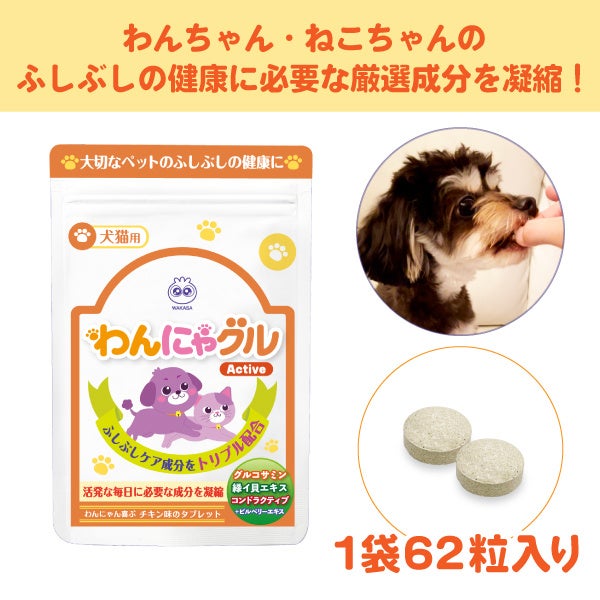 株式会社わかさ生活(本社:京都市下京区)は、わんちゃん・ねこちゃんのふしぶしの健康のために、サプリメント『わんにゃグル』を2022年2月5日より販売いたします。