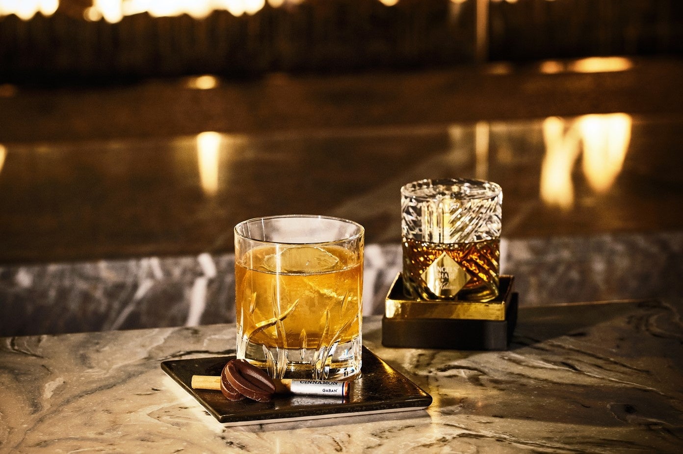 エンジェルズ シェア オード パルファムをイメージしたカクテルはスパイシーでウッディな魅惑の味わい。ヘネシー コニャック、バニラ、シナモン パウダー、ウォルナッツの組み合わせが、フレグランスの魅惑的で馨しい余韻を感じさせます。