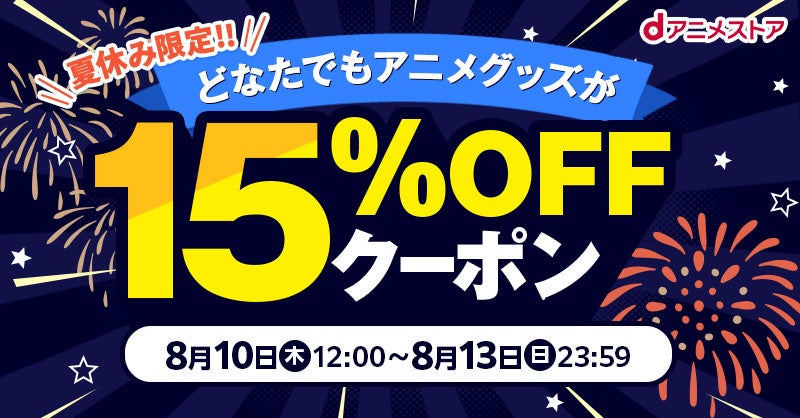 夏休み限定!どなたでもご利用可能なアニメグッズ15%OFFクーポン配布中!可愛いフィギュアや、この季節にぴったりの納涼グッズまでご用意してます!