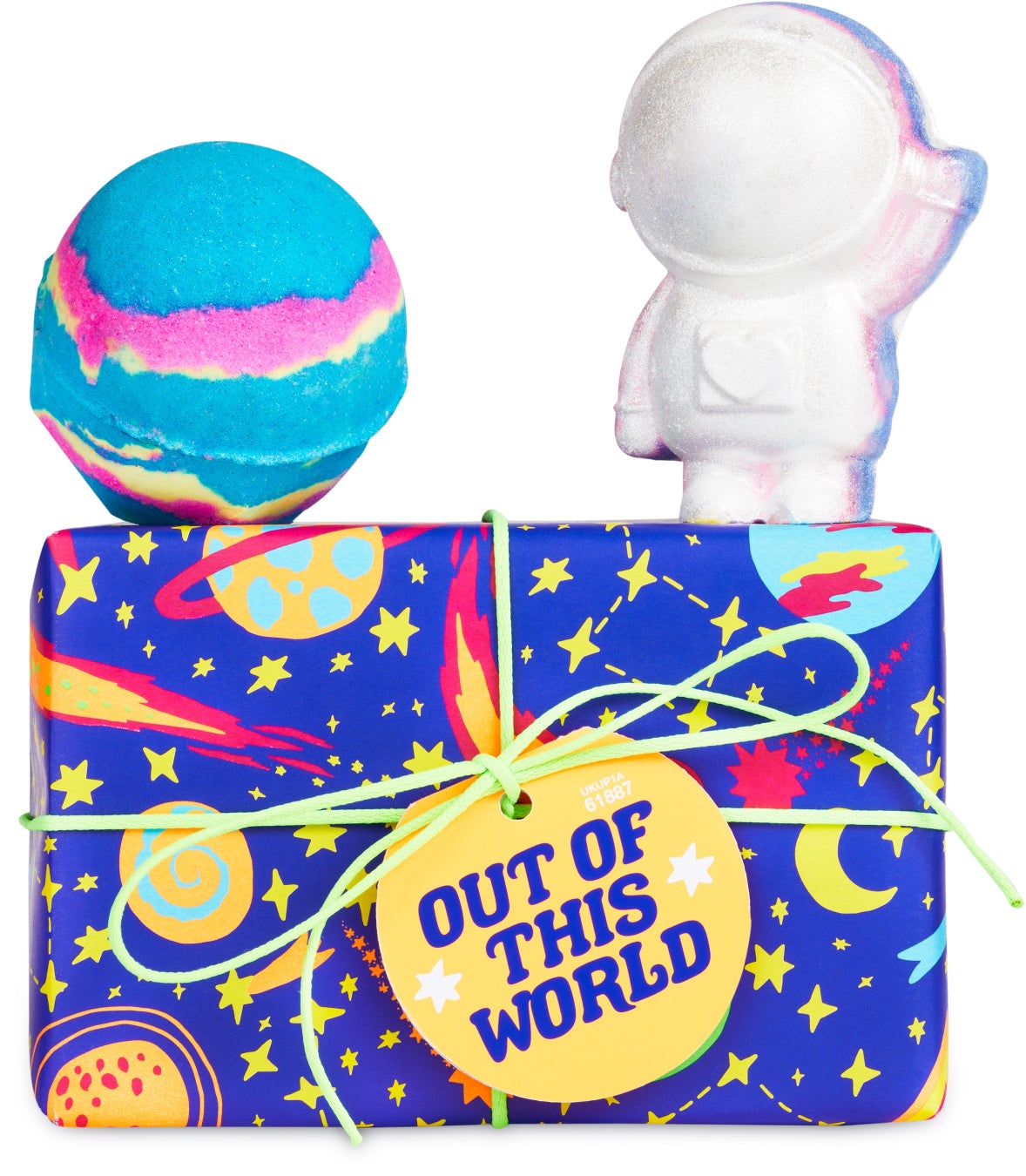 宇宙飛行士をモチーフにしたバスボム(入浴料)『アウトオブディスワールド』はシトラスの香りと小惑星が爆発しているようなポッピングキャンディの弾ける音がまるで宇宙空間に浮かんでいるような気分にさせてくれます。 商品名である「アウトオブディスワールド」は「この世のものとは思えないほど素晴らしい」という意味もあります。地球を超え、宇宙で一番の存在のお父さんや大切な方に今までの感謝の気持ちを伝えるだけではなく、宇宙飛行士になったようにいつもとは違う、まるで冒険のようなバスタイムを贈ることができるアイテムです。