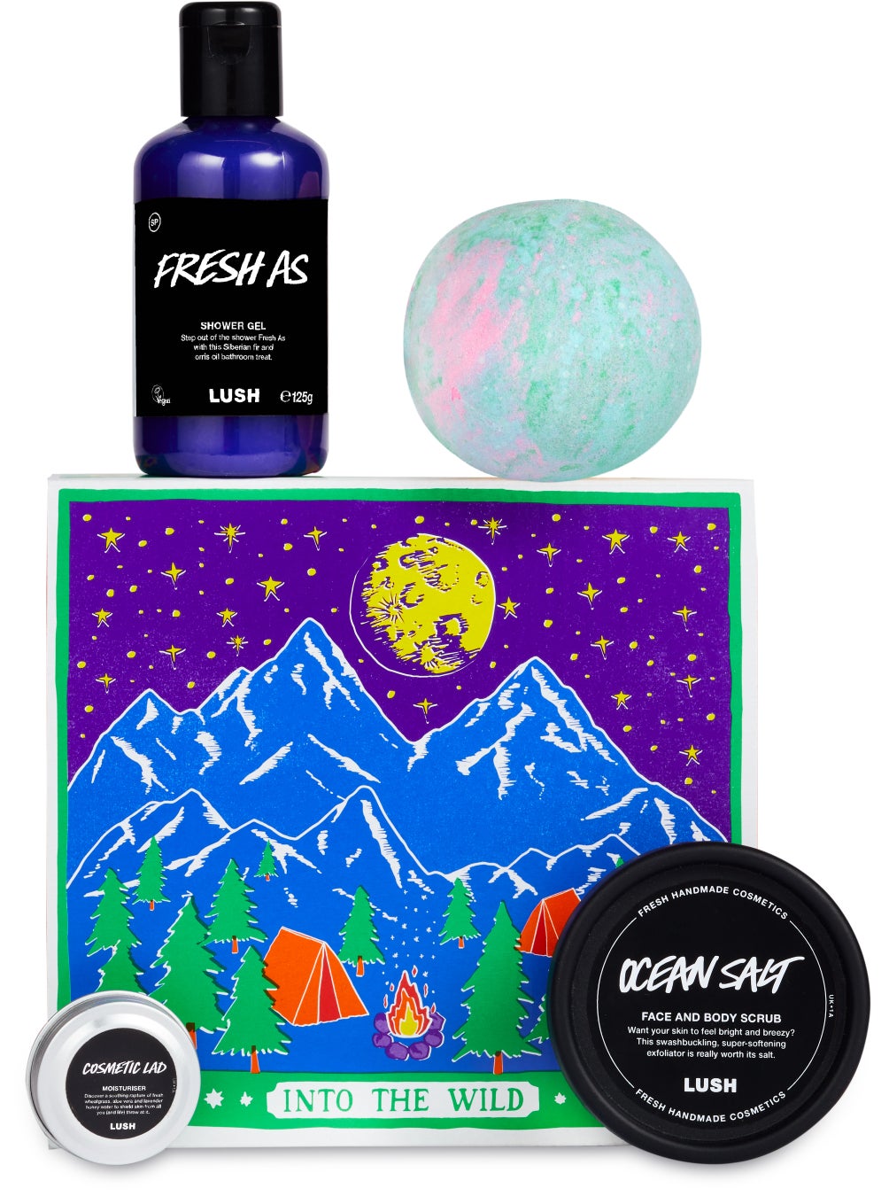 大自然の中での冒険の後は、バス&スキンケア商品4種類が入ったこのギフトで寛ぎながらリフレッシュ。大きなマッチ箱のようなギフトボックスは、山脈を描いたワッペンやポストカードからデザインのヒントを得ています。また、懐かしいアナログ感のある美しい発色のイラストはシルクスクリーンプリントをイメージしています。