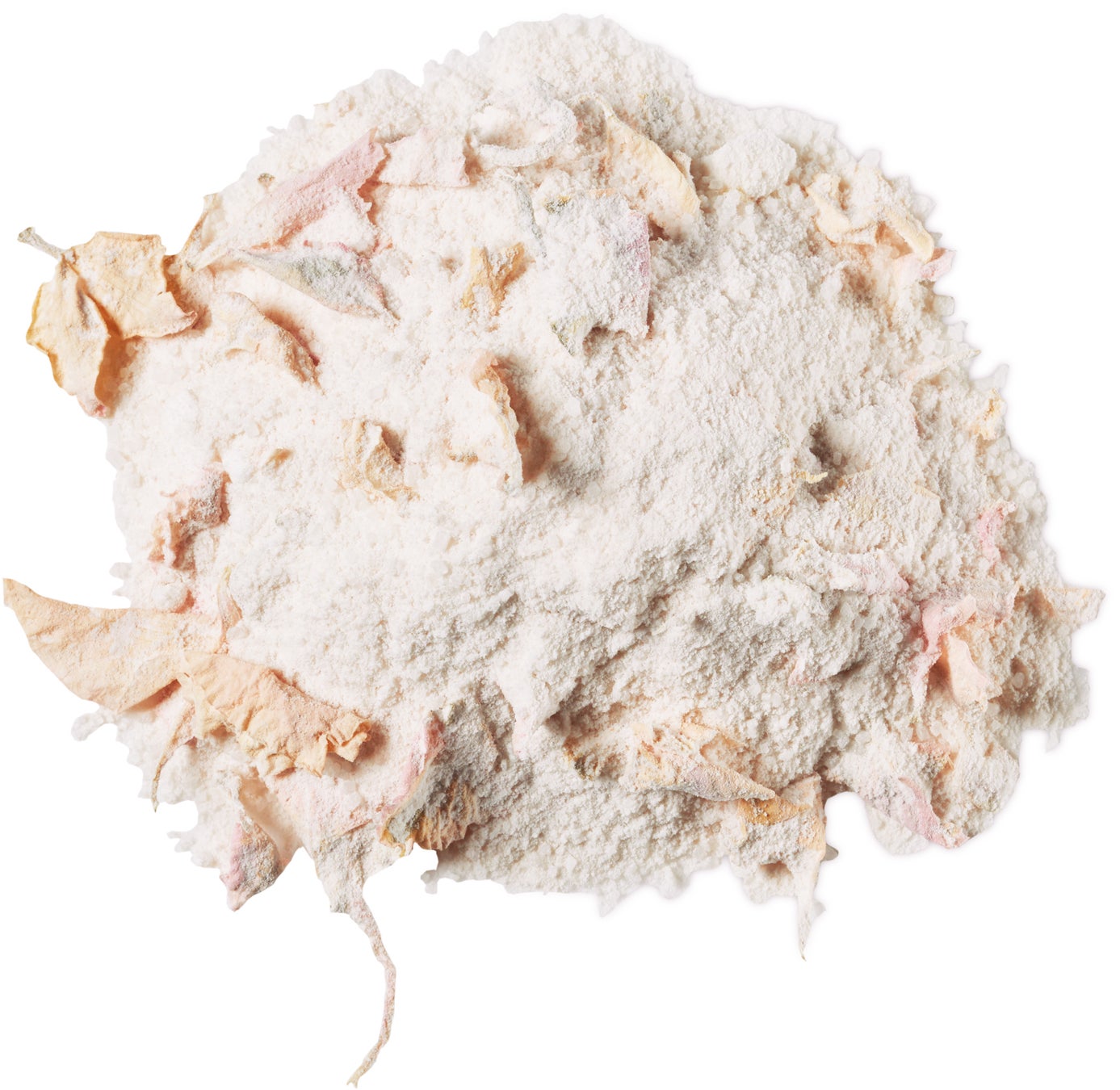 砂糖とカラミンのスクラブをブレンドしたシャウダー(洗浄料)です。ラッシュを象徴するバスボムと同様に、重曹とクエン酸を含んだパウダーが泡立ちながら全身を洗浄します。カラミンは天然鉱物を粉砕したソフトな質感のパウダーで、お肌を引き締めて肌触りを柔らかくします。砂糖とカラミンが古い角質を除去してお肌をなめらかにし、綿菓子のような、バニラの甘い香りの泡が心をときめかせてくれます。