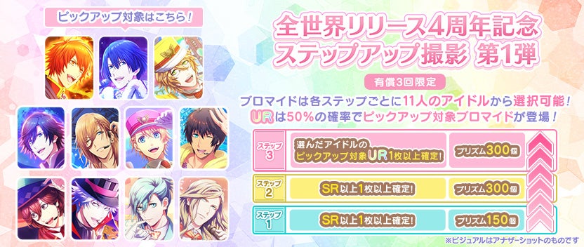 「全世界リリース4周年記念ステップアップ撮影」は第2弾まで開催いたします。