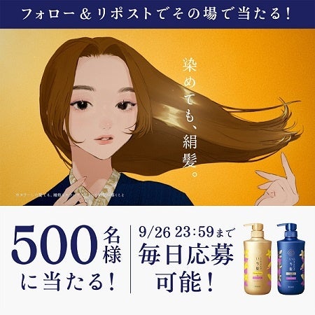 いち髪X公式アカウント(@kracie_ichikami)をフォローして、指定の投稿をリポストすると、「いち髪 ダメージリペア&カラーケア シャンプー・コンディショナー」現品が500名様に当たります。