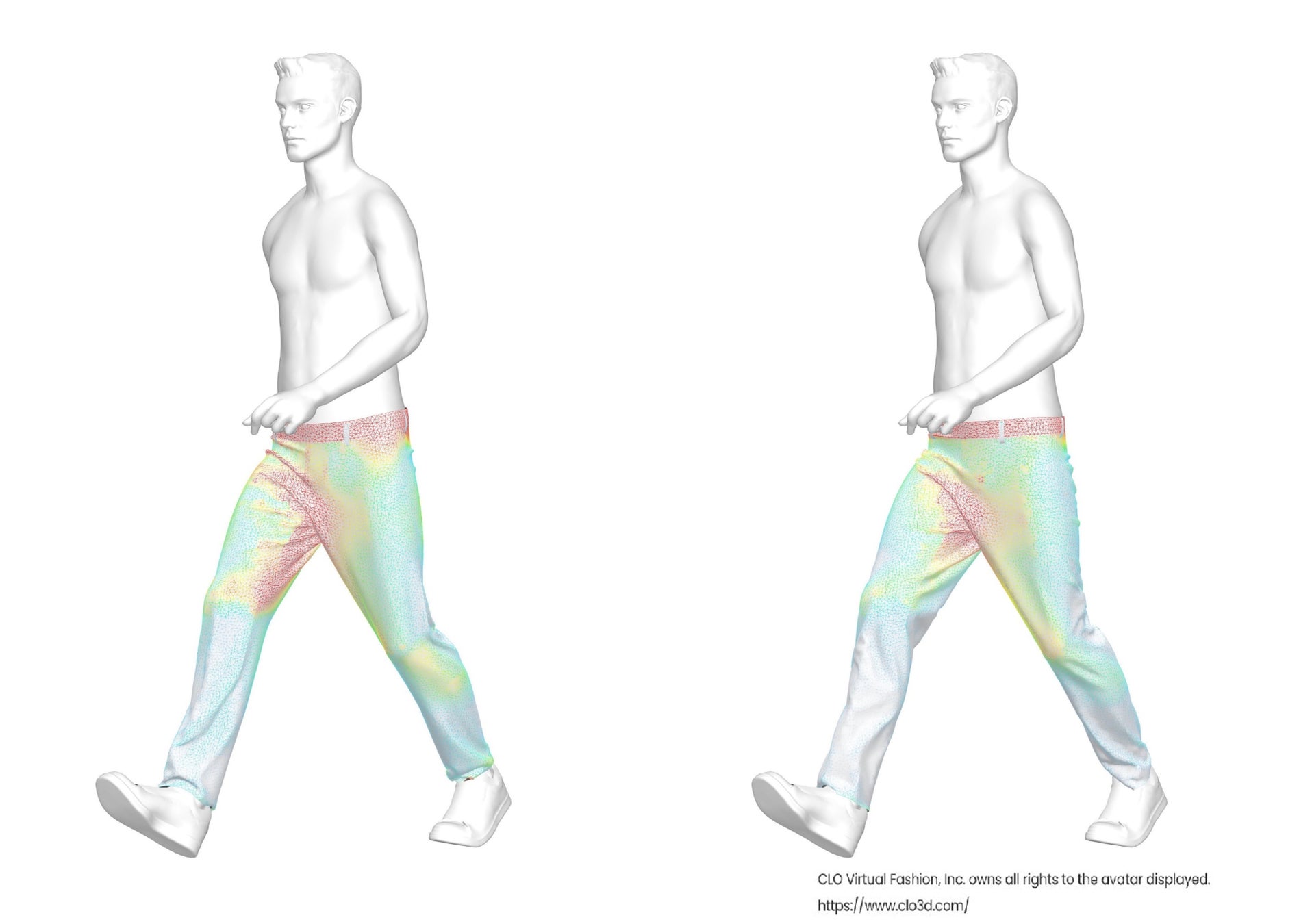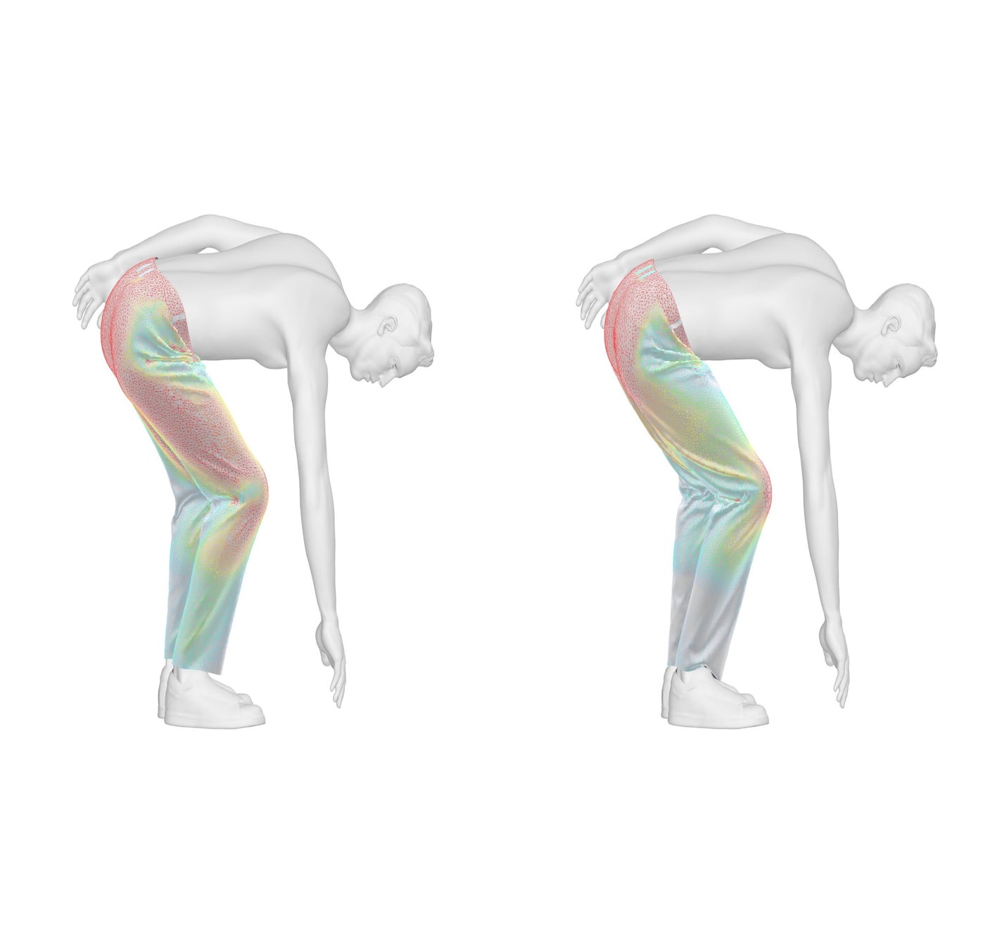 下段:従来品とダイナモーションフィット搭載ミズノアイスタッチムーブパンツでの比較