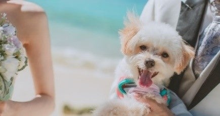 前撮り・後撮り・フォトウェディングで、家族の一員であるペットと一緒に撮影いただけます。大切なペットと、チャペルやビーチで撮影できるプランをご用意しております。ペットのお洋服も自由に持ち込みいただけます。