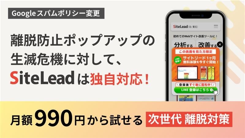 パフォーマンスマーケティング事業・メディア事業を展開する株式会社インタースペース(所在地:東京都新宿区、代表取締役社長:河端伸一郎、証券コード:2122、以下インタースペース)のグループ会社である株式会社N1テクノロジーズ(本社:東京都新宿区、代表取締役:中山浩平、以下N1テクノロジーズ)が提供するWebサイト改善ツール「SiteLead(サイトリード)」は、Googleが2026年6月15日に施行する新たなスパムポリシーに先立ち、離脱防止ポップアップの表示仕様を2026年5月中に刷新します。