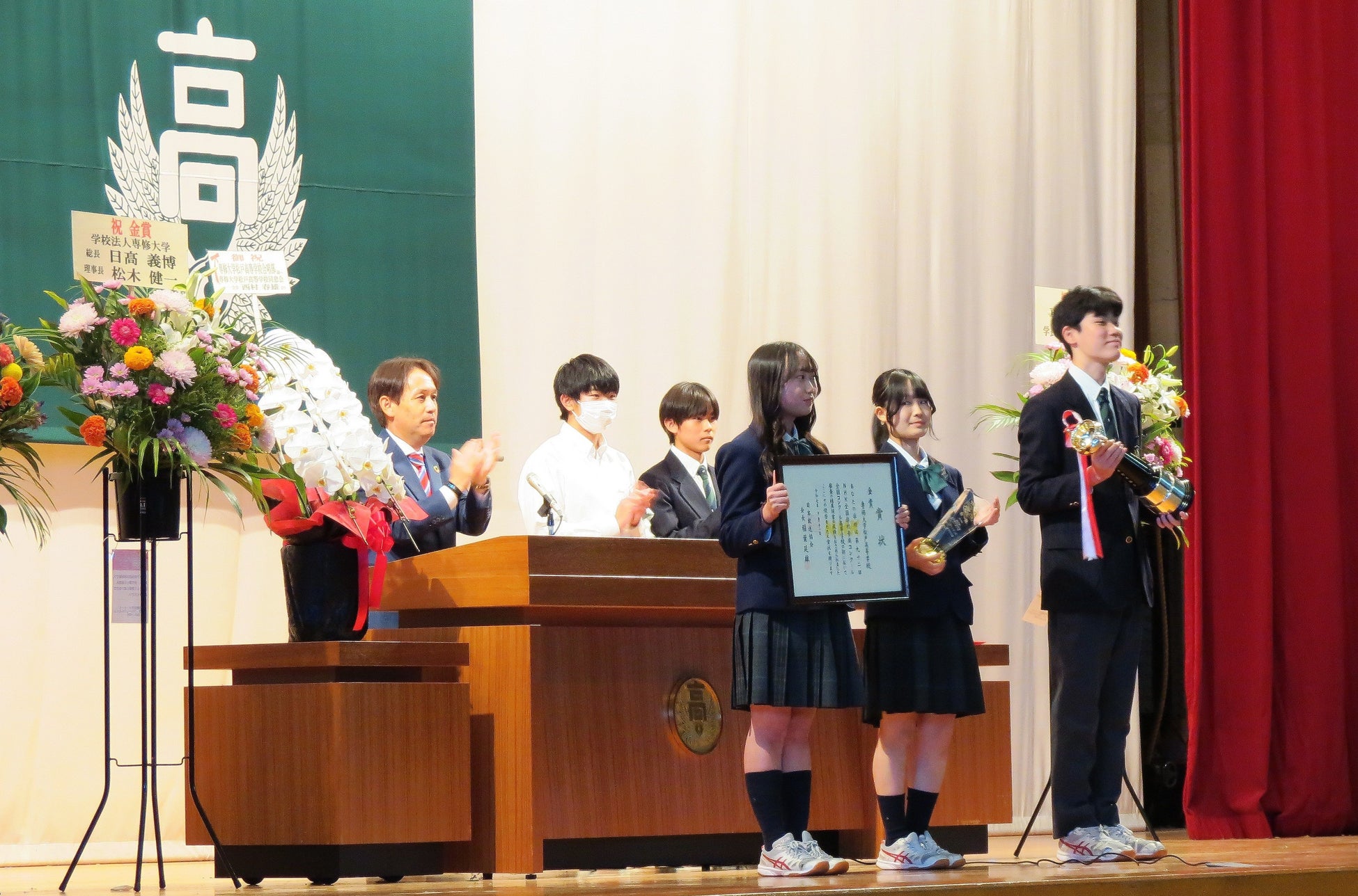 この日、3人は、合唱部の仲間と共に同校体育館で行われたNコン金賞受賞の祝勝会の中で、全校生徒に向けて「全国一の歌声」を披露しました。生徒や教員・関係者も、歌声に耳を傾け、温かい拍手が会場に響き渡りました。