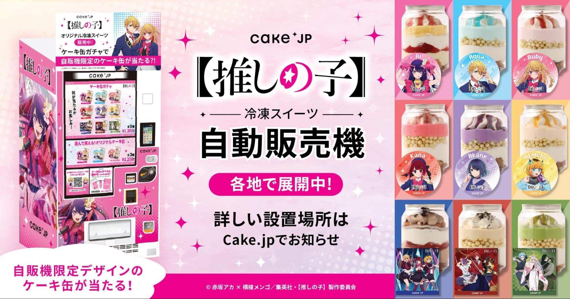 ケーキ専門通販サイト「Cake.jp(ケーキジェーピー)」を運営する株式会社Cake.jp(本社:東京都 新宿区、代表取締役:高橋 優貴)は、TVアニメ『【推しの子】』第2期とコラボレーションしたオリジナル冷凍ケーキ缶が購入できる自動販売機を全国のマルイ・モディ等各商業施設に7月24日(水)より設置いたします。