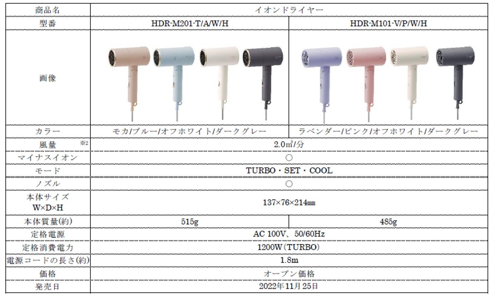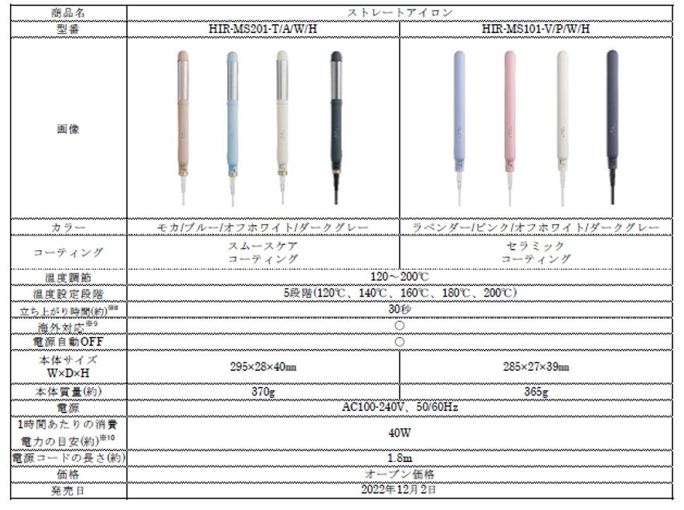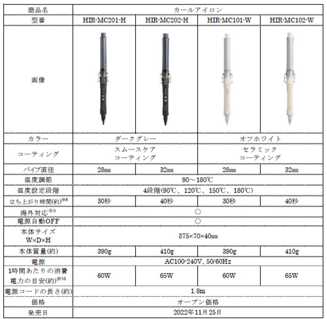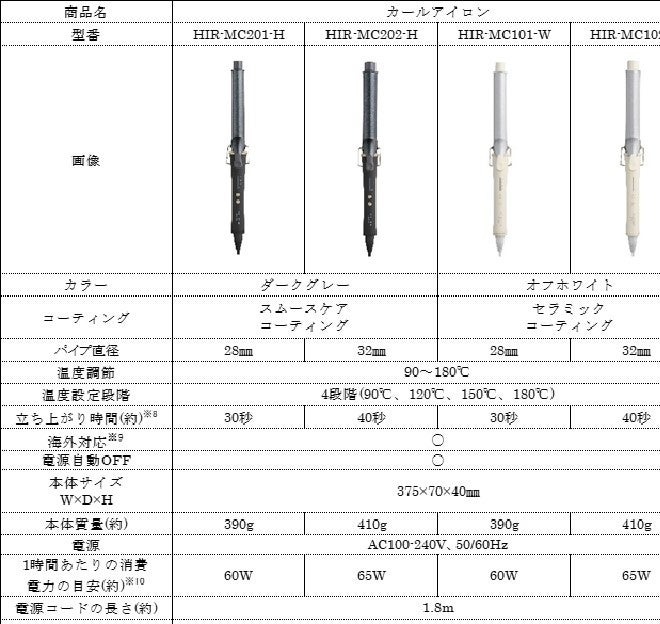 ※1:カールアイロンのみ「ダークグレー」「オフホワイト」の2色展開。