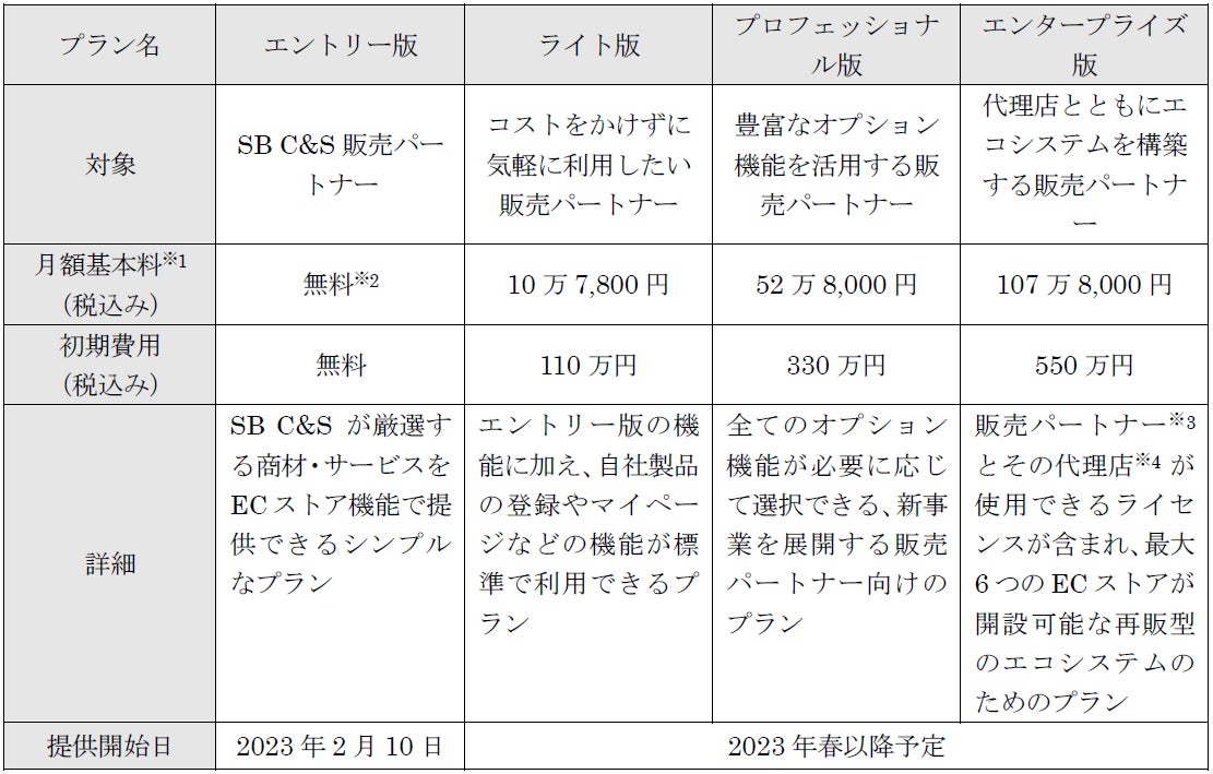 「ClouDX Platform Edition」のサービス開始に合わせて、SB C&Sの販売パートナー限定で、これらの基本機能を2年間無償※で利用できる「エントリー版」を提供します。今春以降には、自社製品の登録などが可能になる「ライト版」「プロフェッショナル版」などの有償プランをラインアップする予定です。