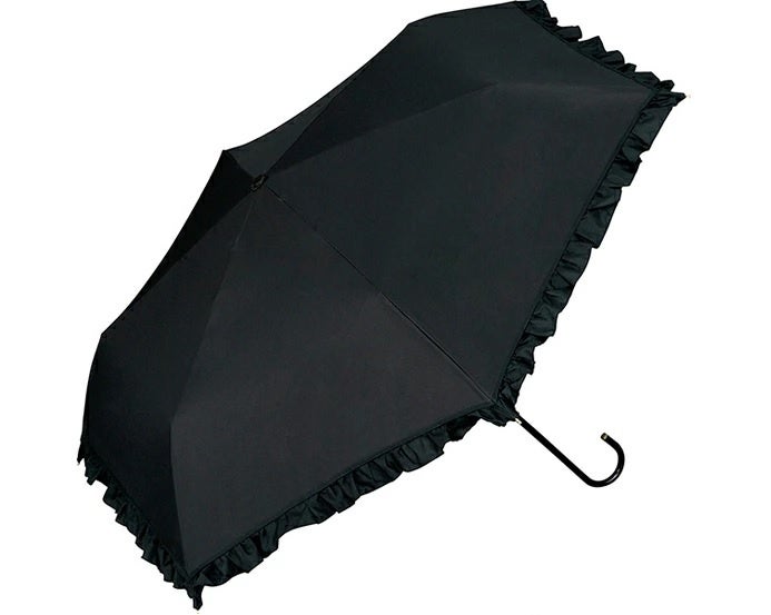 ガーリー過ぎず、上品さを演出してくれるフリル付きの晴雨兼用傘。U字のハンドルもポイント。
