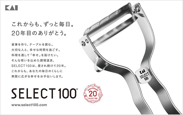 SELECT100は、2004年にグローバル刃物メーカー 貝印より誕生したブランドです。<使いやすい道具はシンプルで美しく、手になじむ。>をコンセプトに、 快適で手になじむ使い心地、直感的に使い方が分かるシンプルさ、必要最低限の要素で機能を満たす理にかなったデザイン、の3つを兼ね備えるアイテムを取り揃えています。料理を通じて「幸せな時間作り」のお手伝いをする道具として、販売開始から20年以経った今でも、プロの料理家から一般のお客様までたくさんの料理好きの方々にご愛用いただいているロングセラーブランドです。料理を作る時間を幸せな時間に変える、誰もが心地よく料理を愉しめる基本の調理道具であることを目指しています。