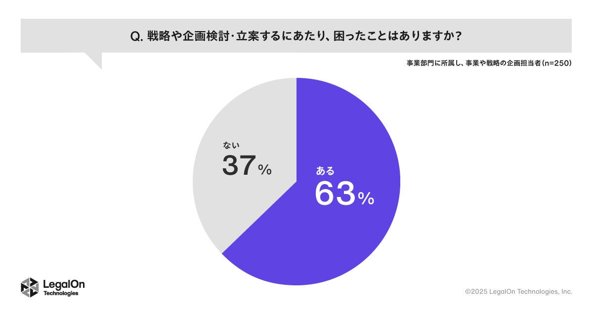 ※この他、戦略や企画検討・立案するにあたって困ることや、リスクチェックを怠ったことによって実際に起きたトラブルに関する調査を実施しております。ご興味お持ちの方は上記URLよりダウンロードをお願いいたします。メディア、記者の方につきましては別途資料をご用意しておりますので、LegalOn Technologies 広報までお問い合わせください。