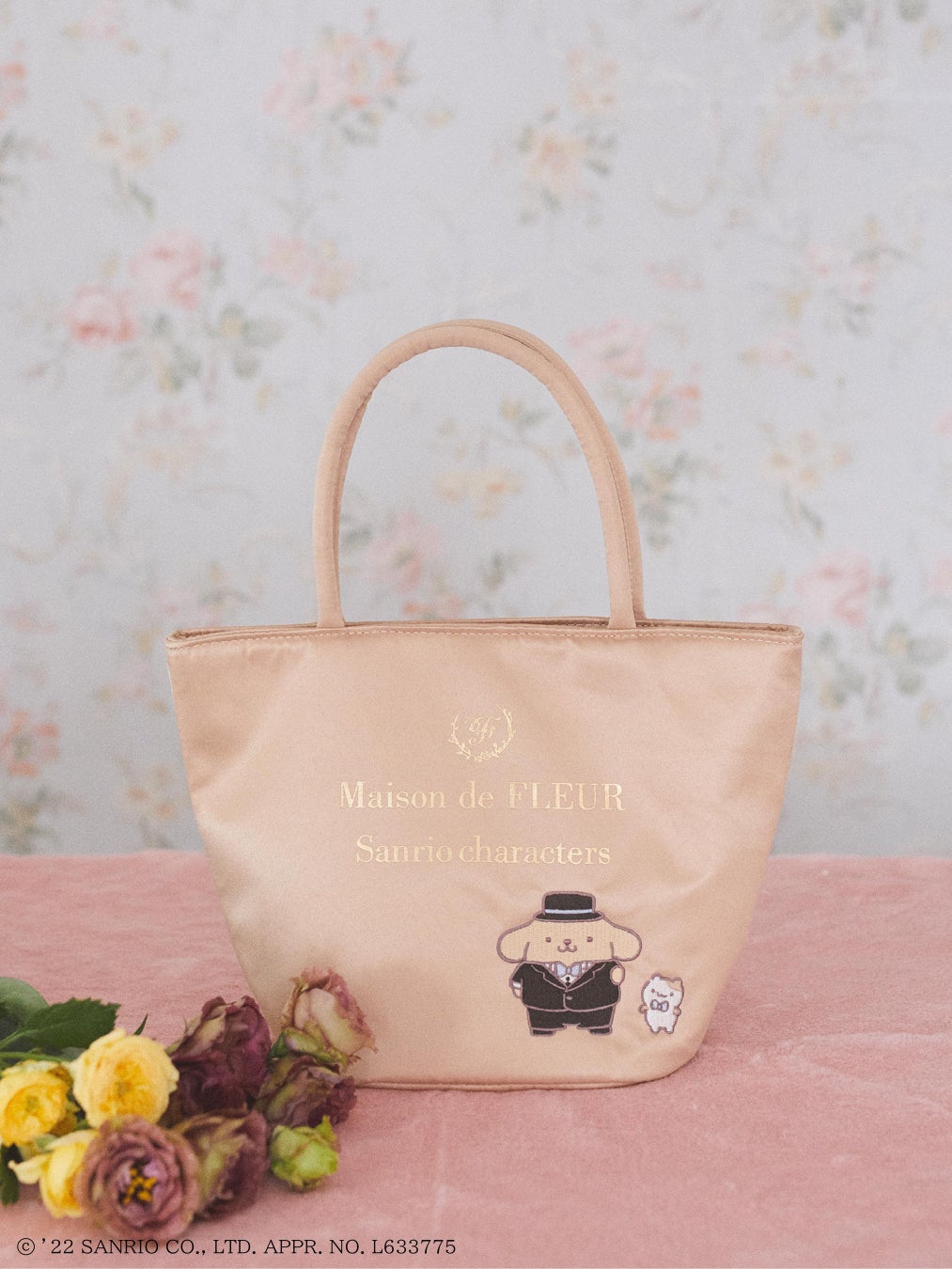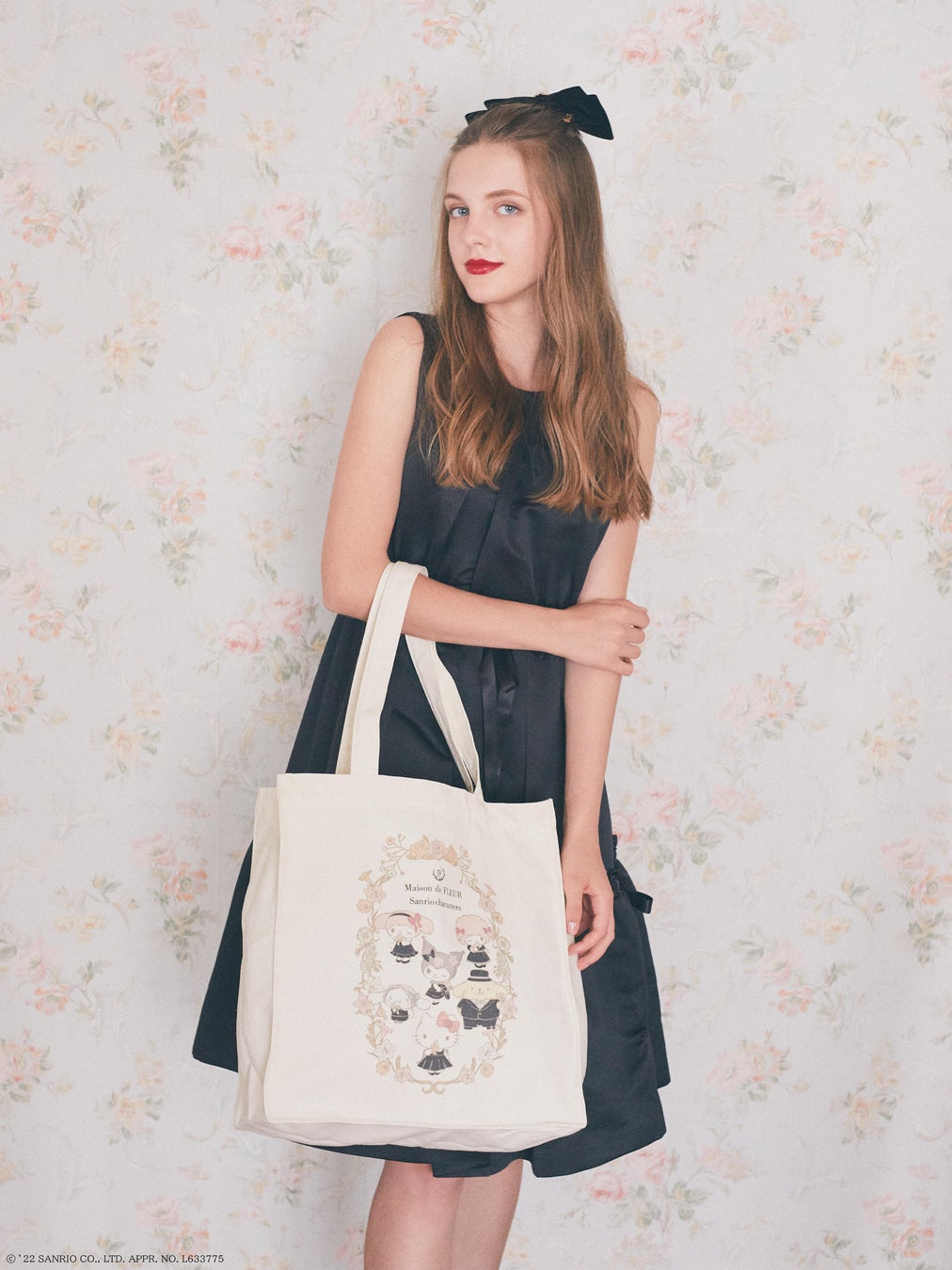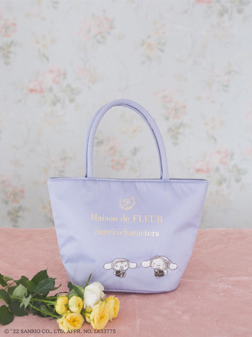 日常使いしやすいシンプルな形のトートバッグと大きなリボン付のポーチには、箔プリントのロゴとキャラクターたちを刺繍で施しました。各キャラクターの横には、仲良しのお友達たちが寄り添っています。