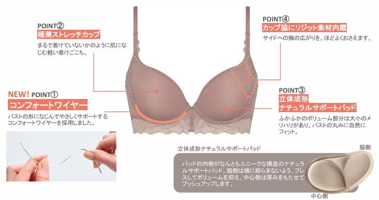 ふかふかなパッドの癒やしの着けごこちと、自然なシルエットはそのまま。