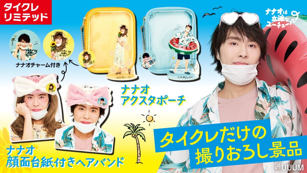 24時間おうちでクレーンゲームを楽しめるオンラインクレーン「タイクレ」が「ナナオは立派なユーチューバー」とコラボレーション 7月11日(金)19時よりタイクレだけの限定景品を展開!