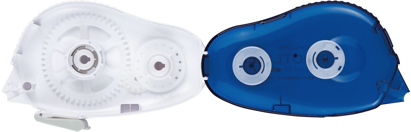 <ドットライナーロング50>の最大の特長は、従来品(※タ-DM4400-10)とほぼ同じ本体サイズでありながら、テープ長を36mから50mへと38%もアップした大容量です。たっぷり使えて、テープ交換の頻度も少なくて済むため、つめ替えの手間も削減します。また、つめ替えの際に廃棄するプラスチック重量を約50%削減するなど、環境にも配慮しました。内部設計等も見直し、従来品より軽い走行感も実現しています。