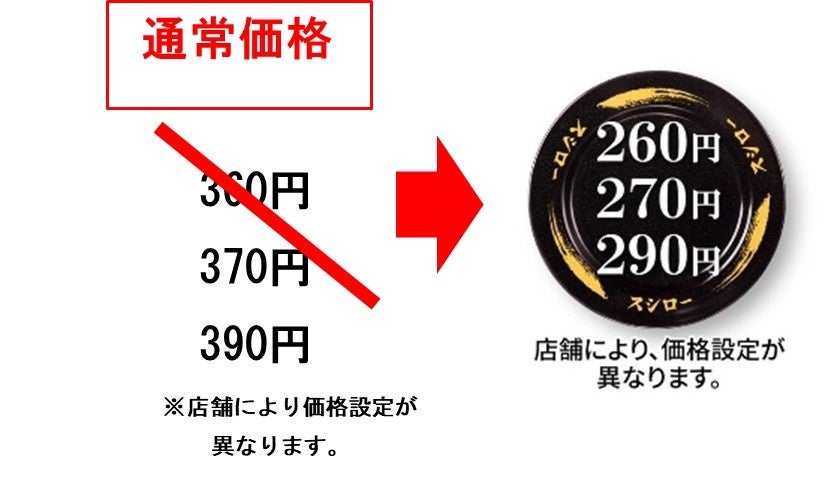 ※お持ち帰り専門店「スシロー To Go」、「京樽・スシロー」ではお取り扱いがありません。 ※1 通常価格税込180円の商品は店舗により、通常価格税込190円、税込210円でのご提供となります。 ※2 通常価格税込360円の商品は店舗により、通常価格税込370円、税込390円でのご提供となります。 |