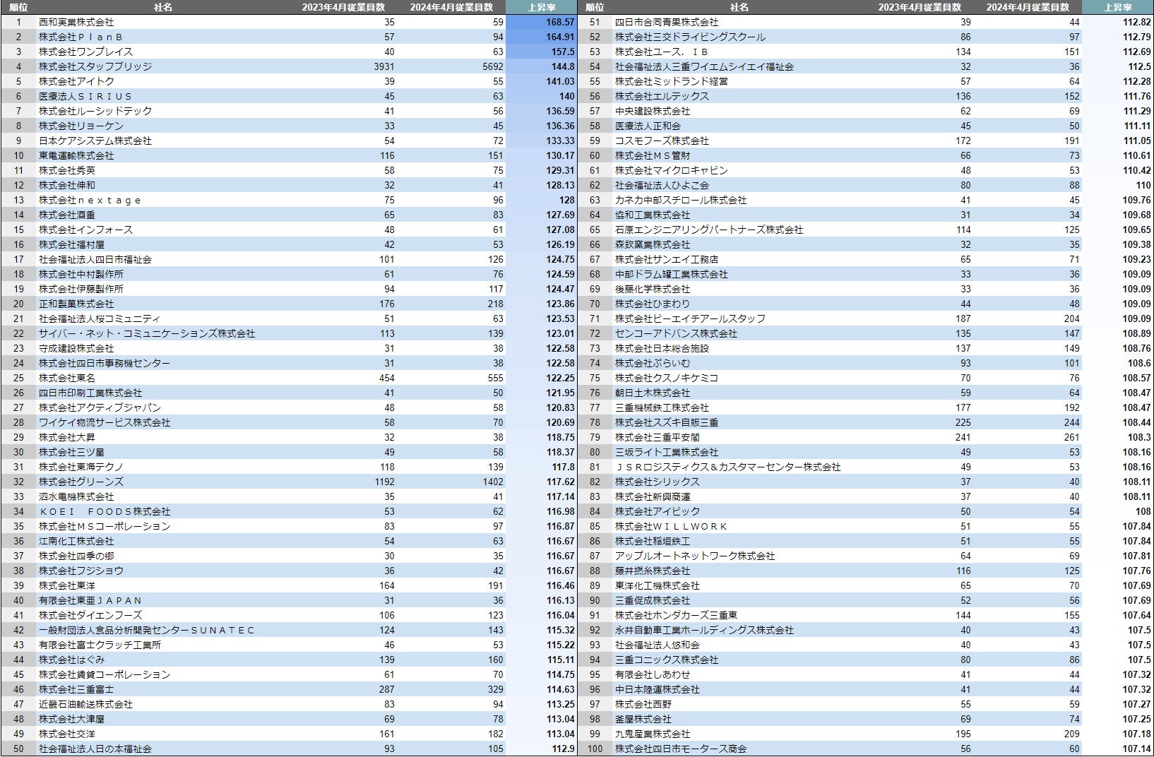 【四日市市】成長企業ランキングTOP100!/SalesNow DBレポート
