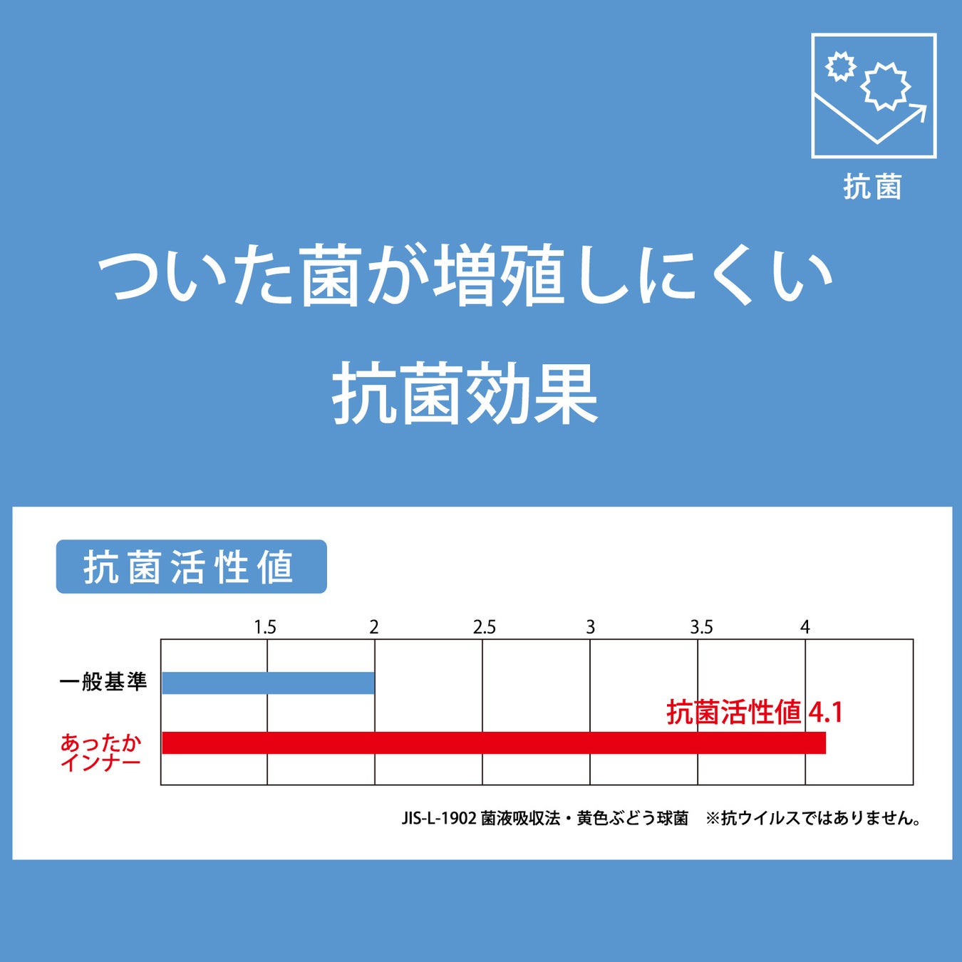 生地全体に編み込まれた制電糸が金属イオンを放出し、菌の繁殖を抑制。※抗ウイルスではありません。