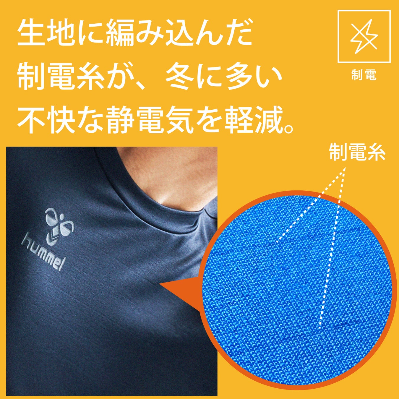 生地全体に制電糸を編み込み、冬に頻発する静電気を軽減。