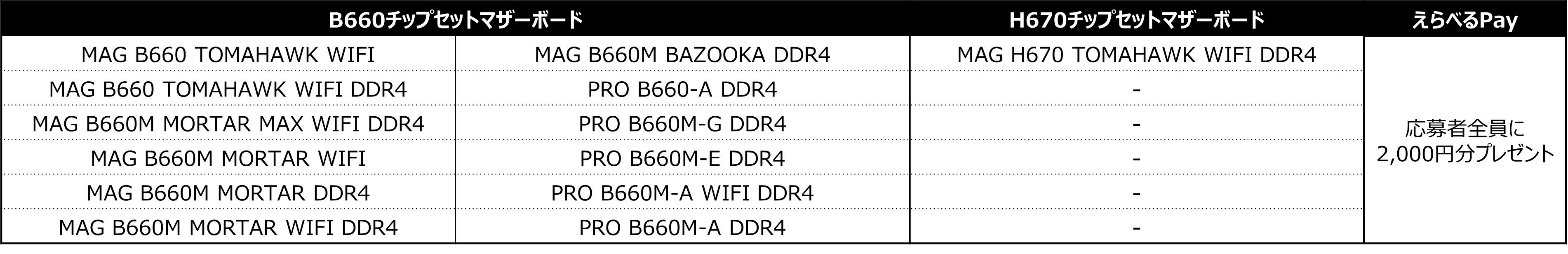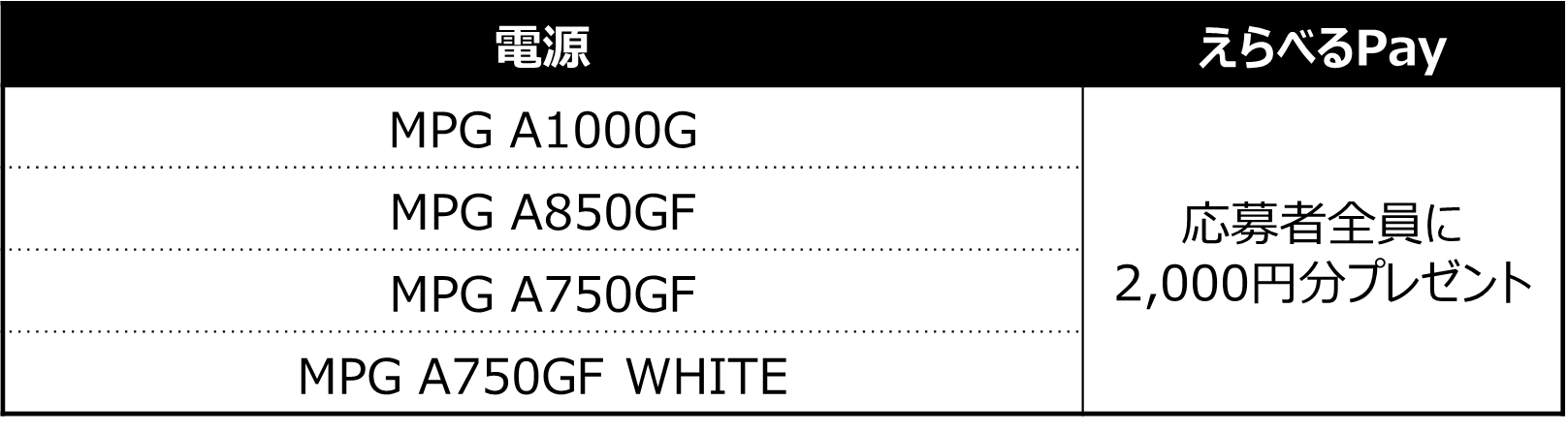MSI、対象のチップセット搭載マザーボードや一部のMSI 簡易水冷クーラー・電源を購入後、指定サイトにレビューを投稿すると最大2,000円分のえらべるPayが必ずもらえる!