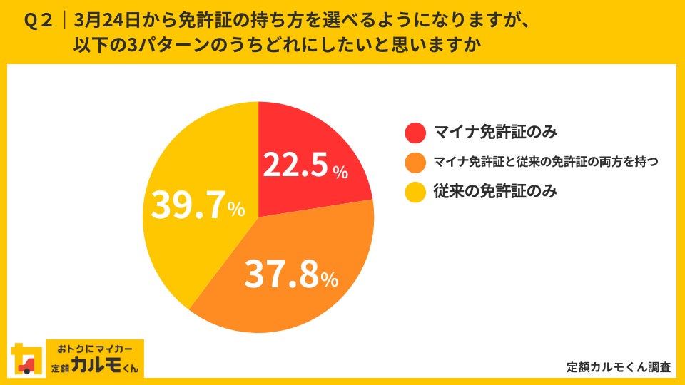 Q2:3月24日から免許証の持ち方を選べるようになりますが、以下の3パターンのうちどれにしたいと思いますか。今の気持ちに近いものをお選びください