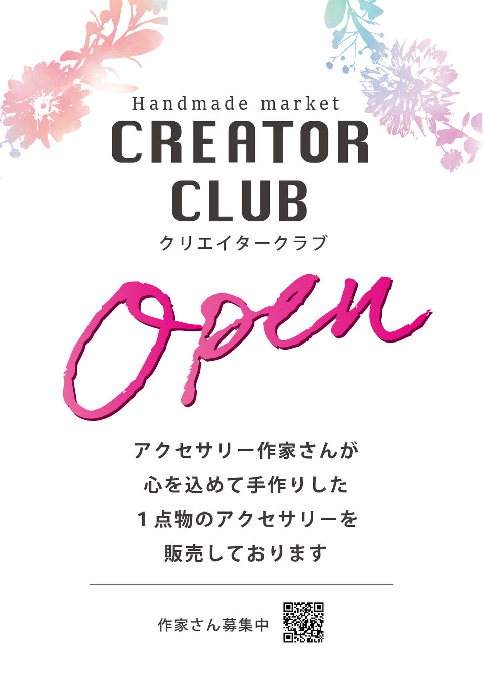 CREATOR CLUBは、アクセサリー作家さんが心を込めて手作りした「1点物」のアクセサリーを期間限定で販売しているSHOPです。