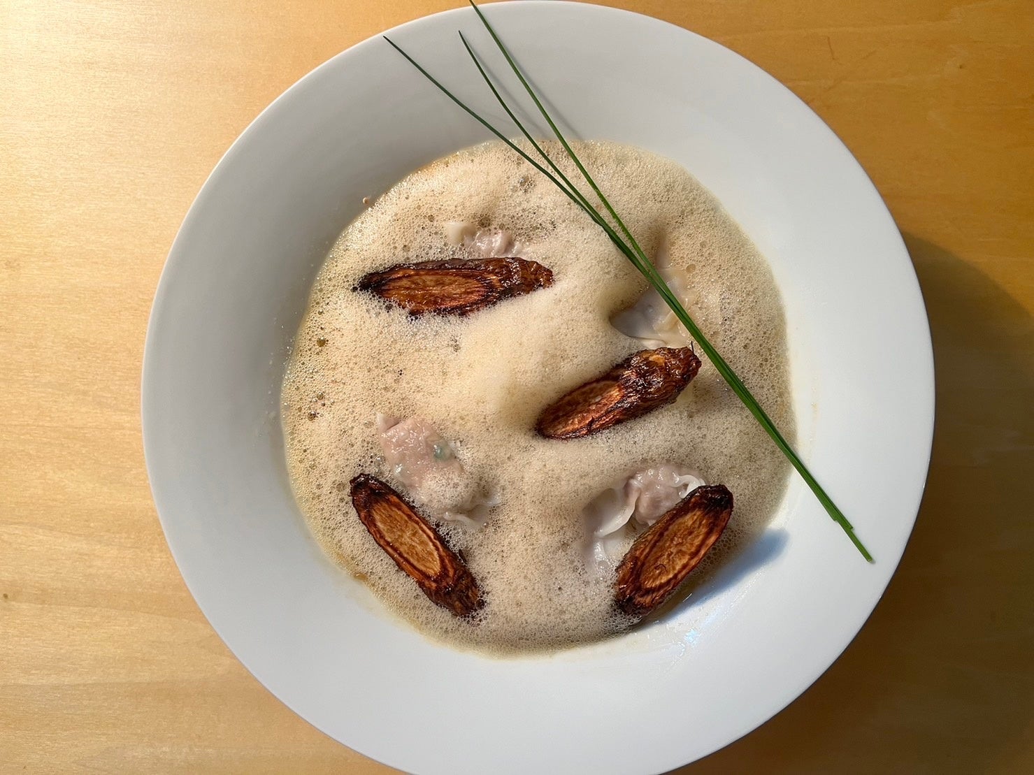 猿仏産ホタテと羊の雲呑、液体味噌根菜のらぁ麺 (1人前) 1,700円<各日100点限り>