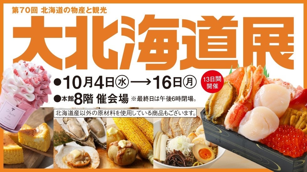 【日本橋高島屋】北海道駐在バイヤーが北海道中を探して見つけた北の美味が集結!2023年10月4日(水)から13日間、「北海道の物産と観光 大北海道展」を開催!!