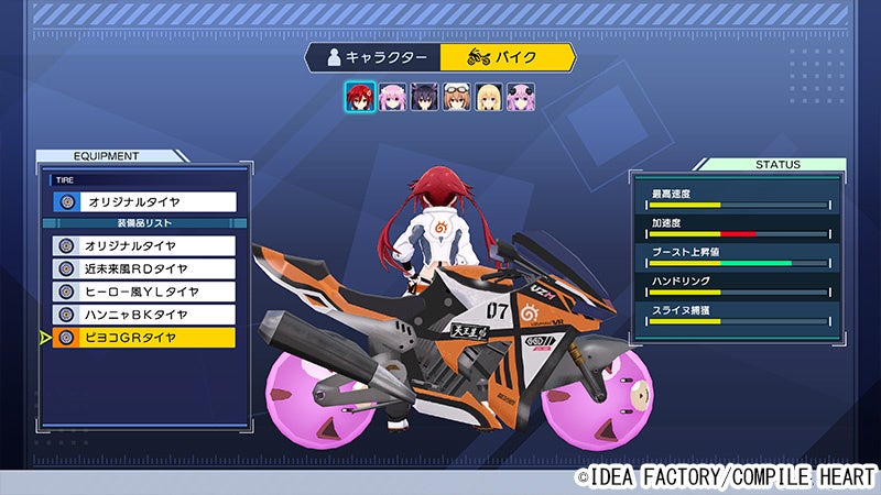 キャラクターが操るバイクは、パーツを交換する事で見た目や性能をカスタマイズすることが可能!