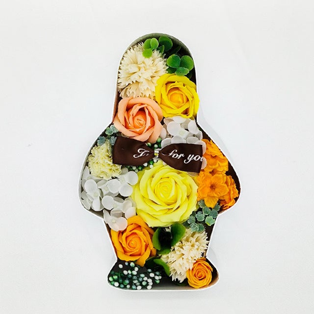 石鹸で作られた繊細なお花がSuicaのペンギンのボックスいっぱいに入ったソープフラワーボックス。
