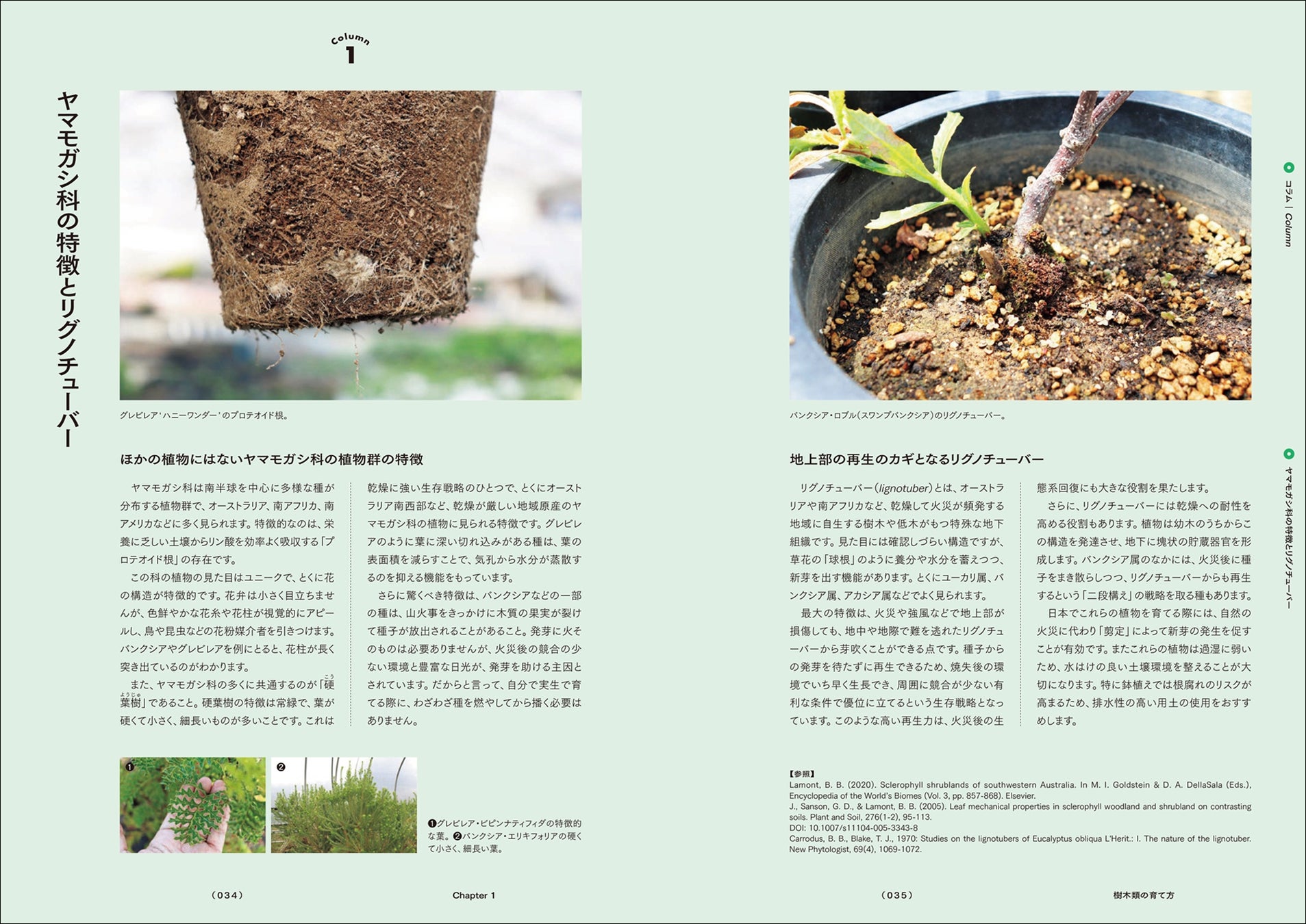 Column1 ヤマモガシ科の特徴とリグノチューバー/Column2 南半球プランツの土と施肥/Column3 温湿度管理について/Column4 ニュージーランドの高山植物/Column5 地生ランと食虫植物/Column6 神々の花園 ナマクアランド