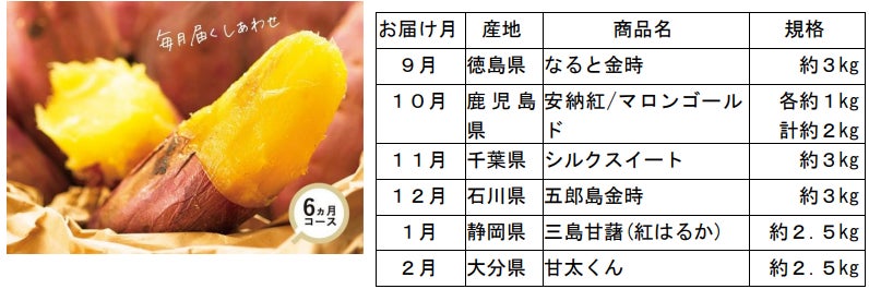 第2弾の今回は、「ねっとりからホクホクまで JAタウンが誇るさつまいも 6か月コース」「王道から稀少品種まで 食感を楽しむりんごのリレー 5か月コース」「九州を巡るブランド和牛2種盛りの旅 7か月コース」「秋の味覚といえばやっぱり柿! 4か月コース」「1度は食べてみたい!近年デビューのお米を新米で味わう4か月コース」「しゃりしゃり食感とたっぷり果汁 品種の違いで味わう梨食べ比べ 4か月コース」の6コースを販売します。
