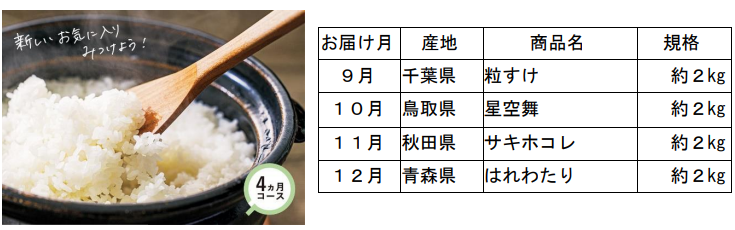 〇1度は食べてみたい!近年デビューのお米を新米で味わう 4ヵ月コース 各月2,780円(税/送料込)