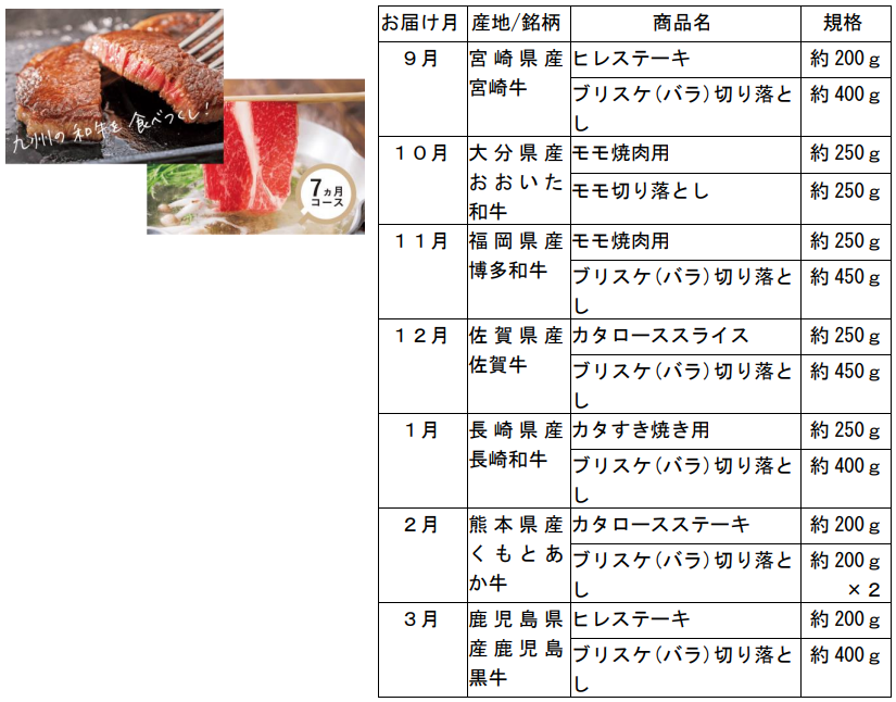 〇九州を巡るブランド和牛2種盛りの旅 7ヵ月コース 各月5,980円(税/送料込)