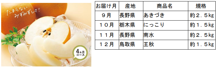 〇しゃりしゃり食感とたっぷり果汁 品種の違いで味わう梨 4ヵ月コース 各月4,580円(税/送料込)