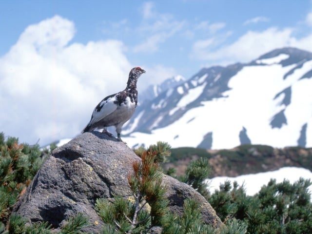 高原バスの終点・室堂へ近づくにつれ高くなっていく雪の壁を感じた後は、ウォーキングゾーンを自分の足で歩いてその高さを実感できます。十数分おきに通るバスと人間と雪壁の頂点を移すことで、一層その高さを感じられる写真が撮れます。雪の回廊や除雪車展示コーナーなどもあり、自然の雄大さやその中で人が培ってきた技術の高さも一緒に感じることができます。室堂ターミナルの横には、立山自然保護センターがあり、高山植物や雷鳥に関する資料に加え、目撃情報なども集められています。室堂ターミナル3階屋上展望台からは室堂園地に出ることもでき、白銀と青空のコントラストの中を片道15分ほど歩くとみくりが池があり、運が良ければ雷鳥と遭遇することも。