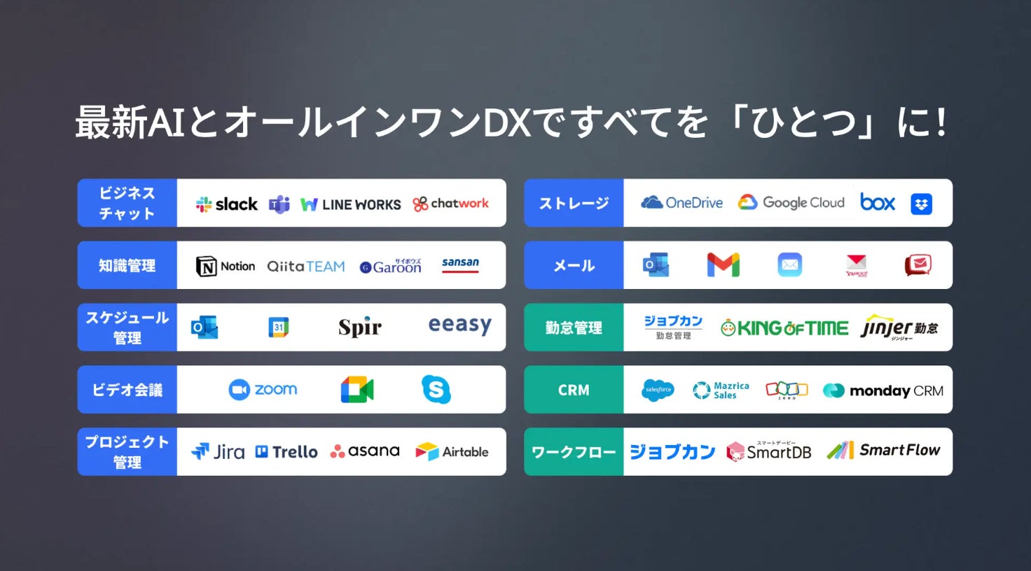 24時間365日稼働するデジタル労働力「.Aiエージェント」を中心に、あらゆるデータを安全かつ最適に統合し、企業の“AI脳”を形成する「.Aiブレイン(LBAI / Learning-Based AI)」を中核ソリューションとして提供。“AIがAIを進化させる” という先進的コンセプト「AI2AI」を日本で初めて提唱するなど、独自のAIエコシステムで業務効率化と組織成長を加速させています。