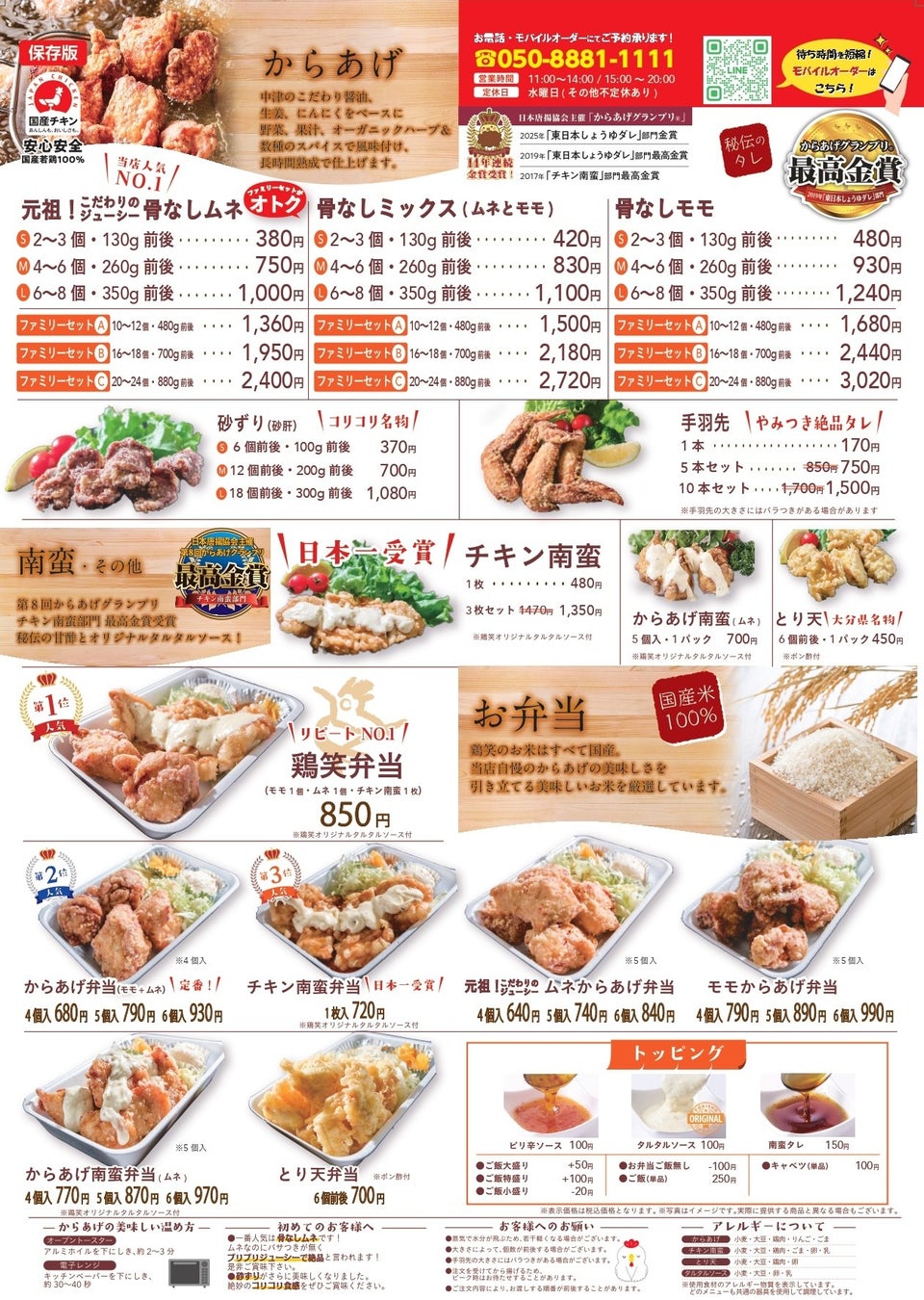 からあげ専門店 鶏笑は国内外に店舗展開中のからあげテイクアウト専⾨店です。