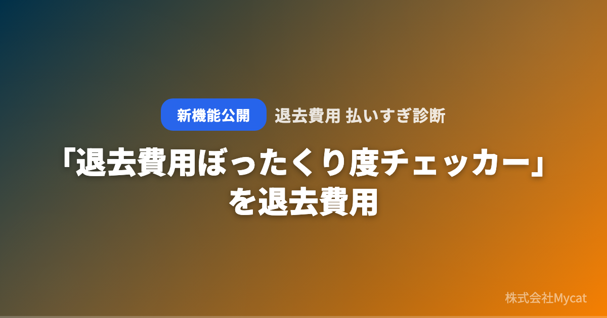 株式会社Mycat(本社:東京都目黒区)は、AI退去費用の適正診断サービス「退去費用 払いすぎ診断」(https://taikyo.xyz)において、退去費用ぼったくり度チェッカー(https://taikyo.xyz/tools/bottakuri-checker)を新たに公開しました。