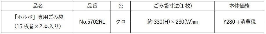 今回発売するシリーズ第 2 弾の「ホルポ」ごみ箱バッグは第 1 弾から容量が約 5 倍に増え、かさばるごみも衛