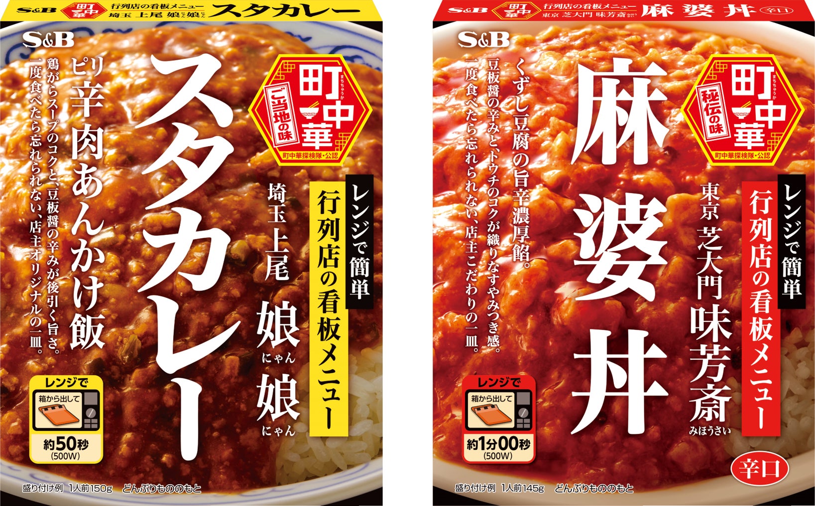 エスビー食品株式会社は、古くから地域に愛され続ける、中華料理中心の大衆食堂の味わいを再現した「町中華」シリーズより、丼メニューを手軽に楽しめる「スタカレー」「麻婆丼」を新発売します。