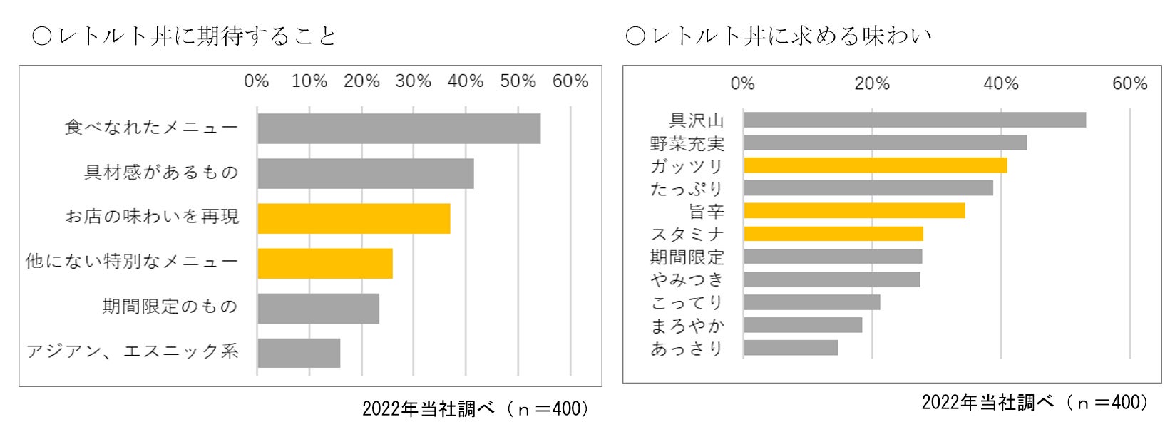 レトルト丼へ求める味の嗜好も多様化しており、「ガッツリ」「旨辛」といった新しい味わいへの期待が高まっています。