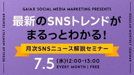 【SNSの最新ニュースキャッチアップを毎月ウェビナーで!】最新のSNSトレンドがまるっとわかる!月次SNSニュース解説セミナーを7月5日(水)から毎月開催!