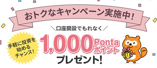 - 【口座開設でもれなくPontaポイント1,000Pontaポイント プレゼントキャンペーン!】