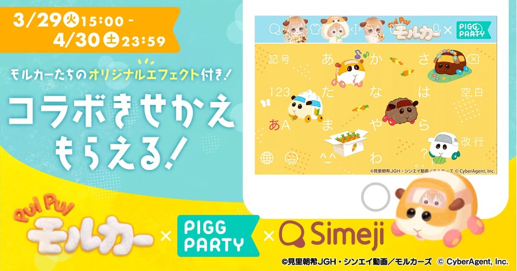 Z世代に大人気!キーボードアプリ「Simeji」、アバターコミュニティアプリ「ピグパーティ」とTVアニメ『PUI PUI モルカー』との期間限定コラボ開始!