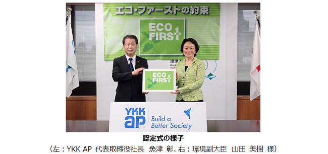 YKK AP株式会社(本社:東京都千代田区、社長:魚津 彰)は、2023年4月5日、環境省が環境の分野において「先進的、独自的でかつ業界をリードする事業活動」を行っている企業(業界における環境先進企業)であることを認定する「エコ・ファースト企業制度」において、「エコ・ファースト企業」に認定されました。